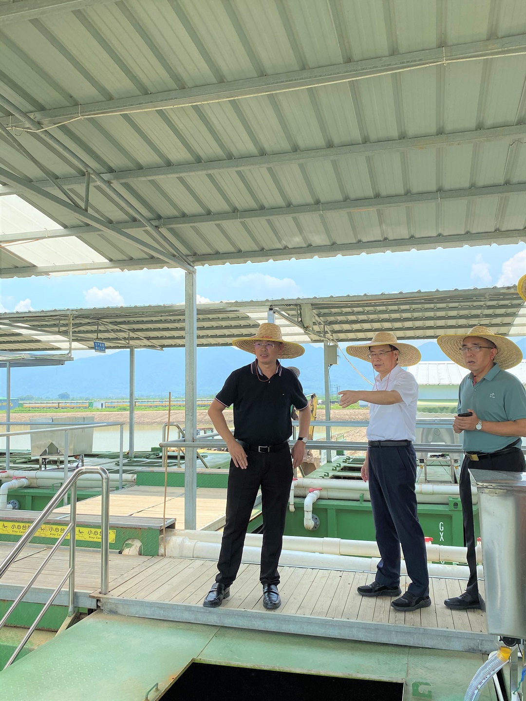 8月15日,广州市政协党组副书记潘建国一行莅临观星农业开展调研。双方在观星农业总部召开了座谈会,舒锐董事长对观星农业绿色生态渔业发展状况和分区式渔稻立体综合种养模式进行了工作汇报。随后,潘书记一行在舒锐董事长的带领下,来到肇庆市鼎湖区观星农业数字化渔业养殖基地进行参观调研。